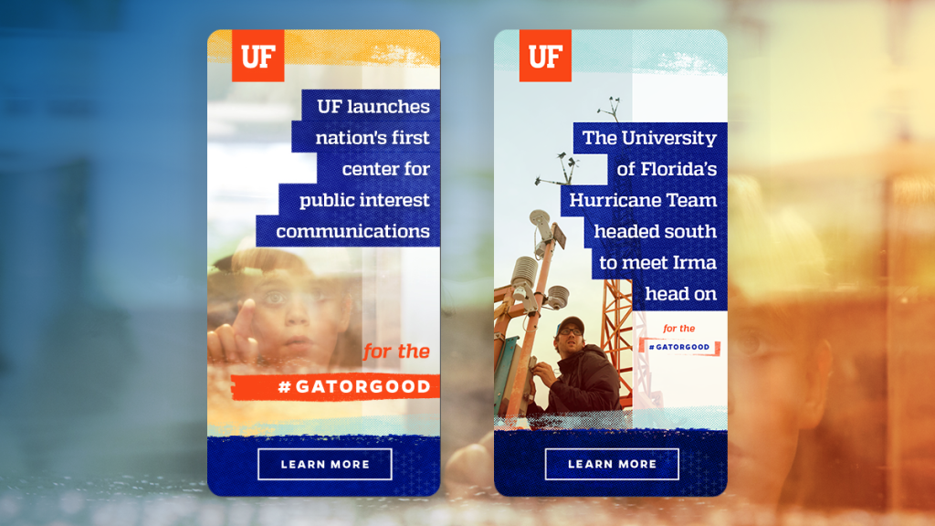 I’ve become a trusted expert on the UF visual identity system, and am regularly tapped by colleagues across campus when either the UF or UF Health visual identity requires an evolution. Most recently, I conducted and presented research on potential UF brand typefaces, and recommended a selection that was then chosen to represent the university.